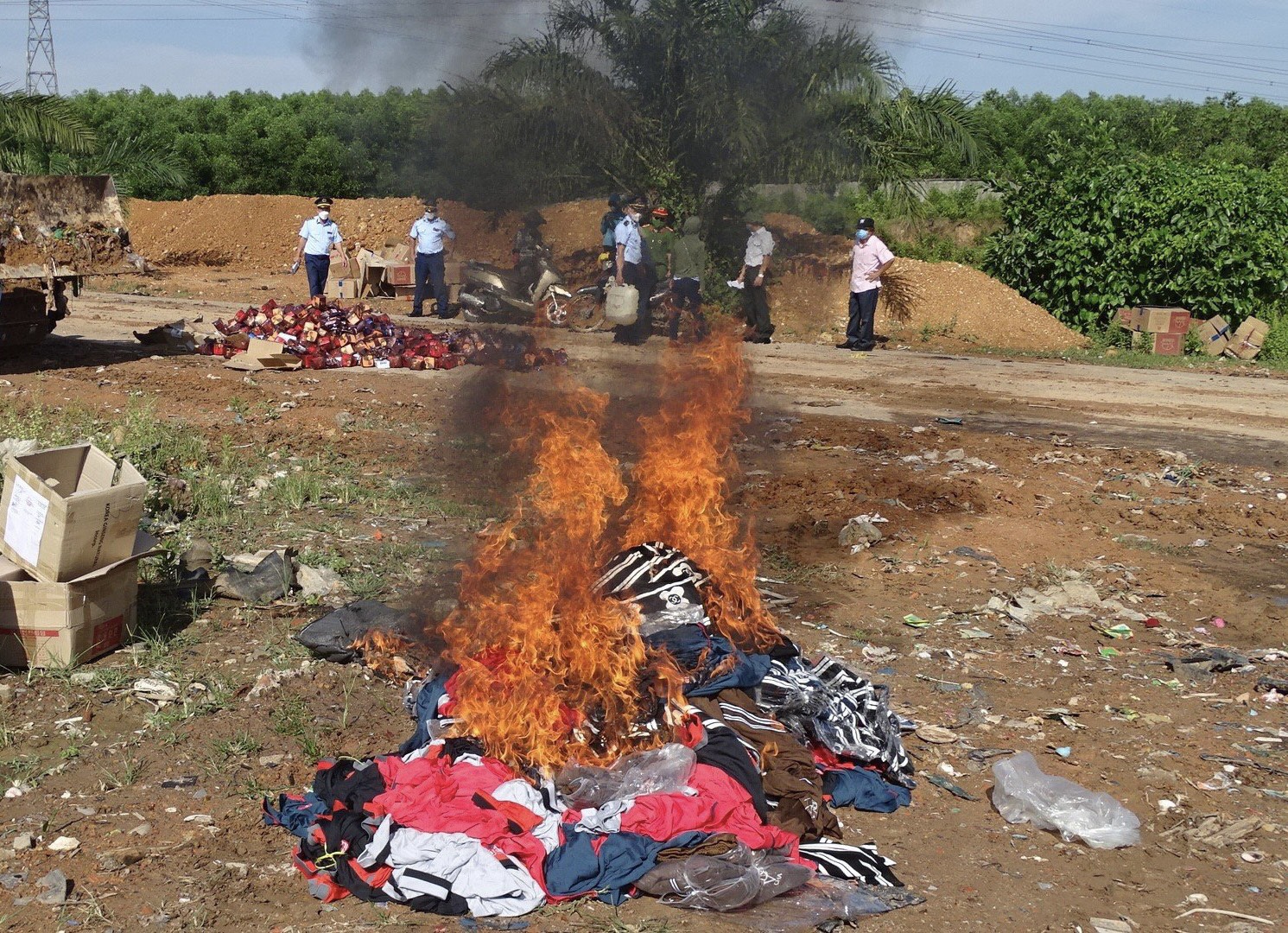 Tại Bắc Ninh, ngày 21/6/2023, dưới sự giám sát của cơ quan chức năng, trên 5.000 sản phẩm mỹ phẩm giả mạo nhãn hiệu, không rõ nguồn gốc xuất xứ trị giá hơn 2 tỷ đồng đã bị tiêu hủy theo quy định. Tang vật vi phạm được đưa vào lò đốt công nghiệp để đốt cháy, không thể tái sử dụng.