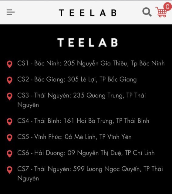 Hệ thống cửa hàng TEELAB tại một số tỉnh thành