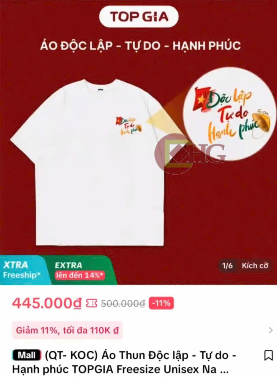 Chị Đ.T.M.N không giấu nổi sự thất vọng khi kể về trải nghiệm mua sắm mới đây trên nền tảng TikTok Shop. Thông qua tài khoản “Top Gia HN”, chị đặt mua một chiếc áo thun trắng vì bị thu hút bởi dòng chữ nổi bật in trên sản phẩm: “Độc lập- Tự do- Hạnh phúc”, cùng hình ảnh Quốc kỳ Việt Nam và chiếc nón lá truyền thống.