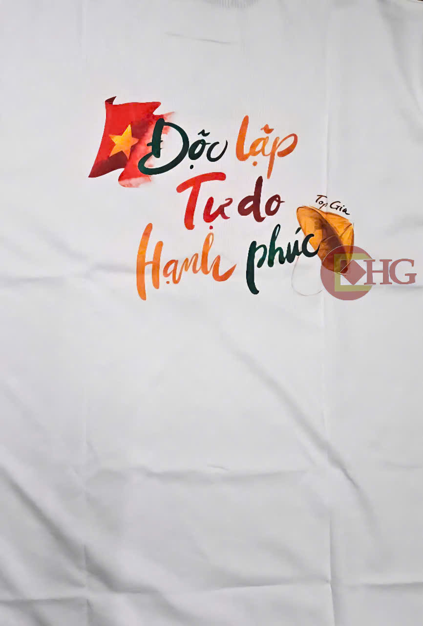 Sản phẩm áo phông mang thương hiệu Top Gia sử dụng Tiêu ngữ "Độc lập- Tự do- Hạnh phúc".