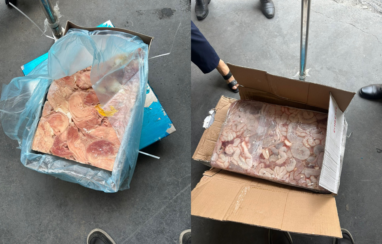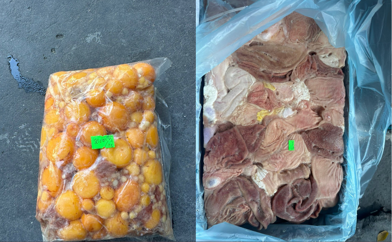 Tại thời điểm kiểm tra điểm kinh doanh chứa trữ hàng hóa trên, Đoàn kiểm tra phát hiện 7,800 kg thực phẩm đông lạnh các loại là nội tạng động vật chưa qua sử dụng, không có hóa đơn chứng từ, không rõ nguồn gốc xuất xứ, không ghi ngày sản xuất, không ghi hạn sử dụng, không thực hiện việc ghi nhãn hàng hóa đúng theo quy định, với trị giá hàng hóa vi phạm là 558,300,000 đồng căn cứ giá niêm yết trên sản phẩm.