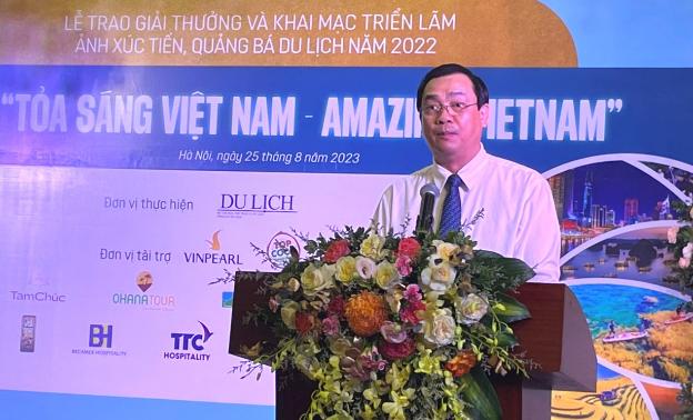 Ông Nguyễn Trùng Khánh, Cục trưởng Cục Du lịch quốc gia Việt Nam phát biểu tại lễ trao giải thưởng và khai mạc Triển lãm ảnh xúc tiến, quảng bá du lịch nă 2022 - Ảnh: VGP