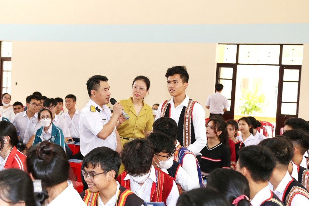 | Báo cáo viên Tổng công ty Tân Cảng Sài Gòn giao lưu với học sinh Trường THPT dân tộc nội trú tỉnh Kon Tum. |