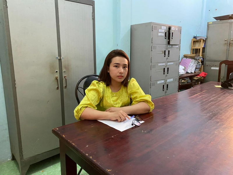 Đối tượng Đinh Thủy Ngân tại cơ quan công an.