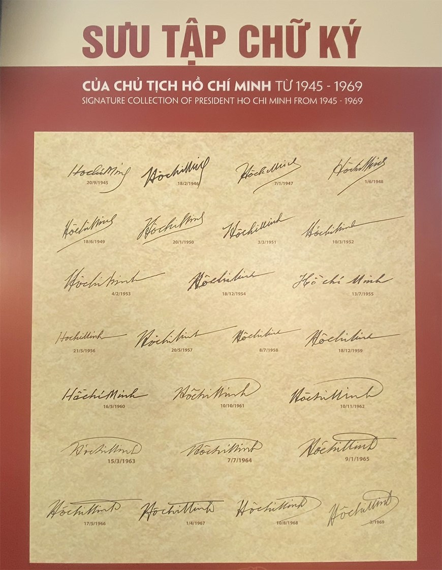 | Sưu tập chữ ký của Chủ tịch Hồ Chí Minh giai đoạn 1945 – 1969. (Ảnh: HL) |