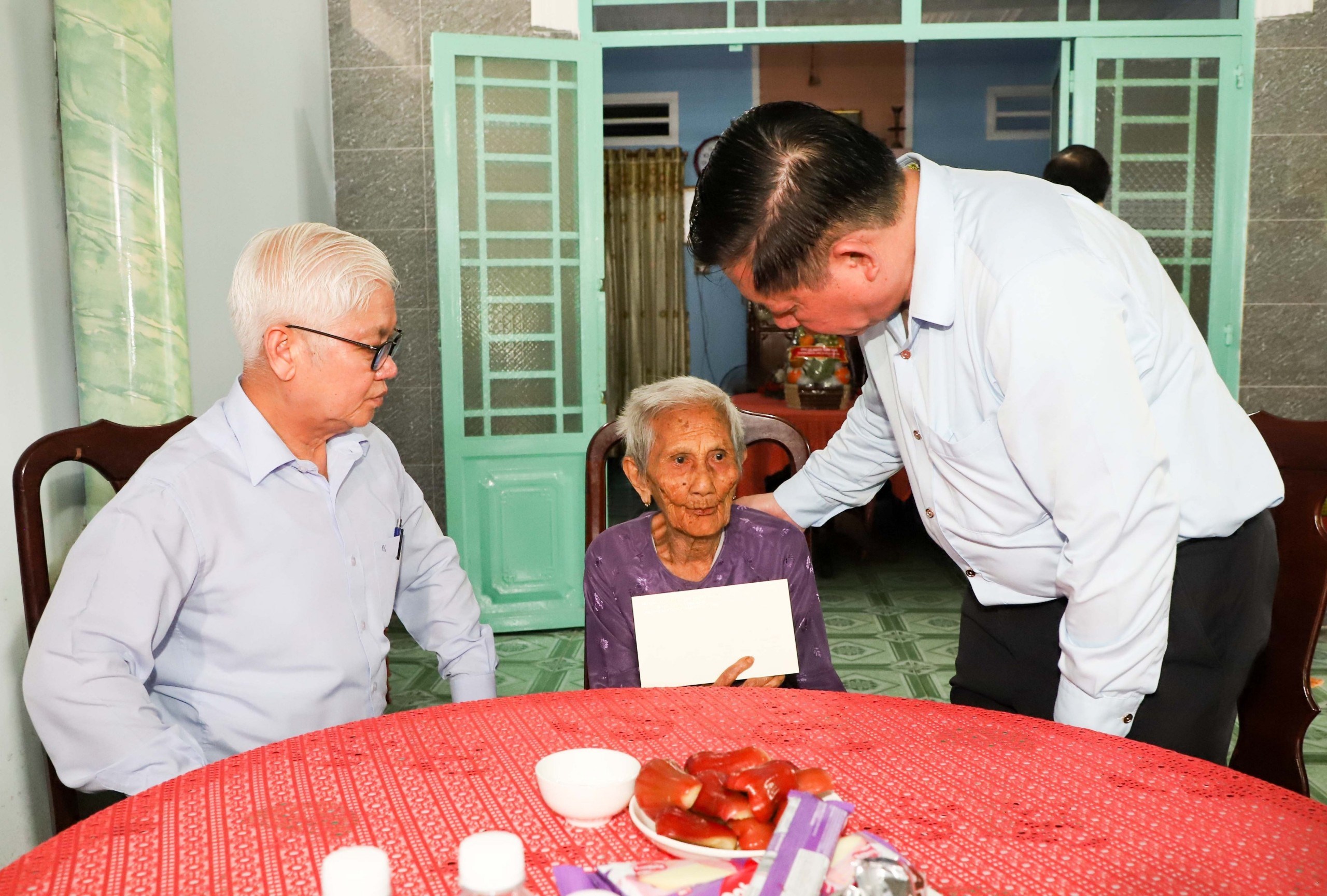 | Đoàn thăm hỏi và tặng quà Mẹ Việt Nam Anh hùng Nguyễn Thị Rực, sinh năm 1923, tại nhà riêng ở phường Phú Lợi, TP Thủ Dầu Một. |