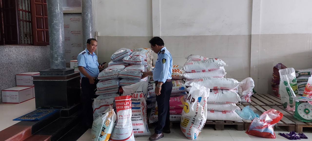 Lực lượng chức năng thực hiện kiểm tra chất lượng, nhãn, nguồn gốc xuất xứ hàng hóa là phân bónKhông niêm yết công khai chứng chỉ hành nghề dược, bán thuốc không có giấy đăng ký lưu hành, bán thuốc bảo vệ thực vật khi giấy đủ điều kiện hết hạn, không treo biển hiệu, biểu tượng thương nhân ký hợp đồng cung cấp LPG chai cho cửa hàng bán lẻ, hàng hóa vi phạm là vàng trang sức, thuốc lá, thuốc bảo vệ thực vật, thuốc đông y, thực phẩm, phân bón, đồ nhựa, nệm cao su, dụng cụ câu cá, gas.