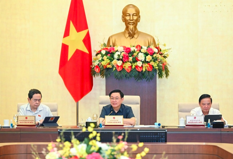 (CHG) Sáng 13/6, dưới sự chủ trì của Chủ tịch Quốc hội Vương Đình Huệ, Ủy ban Thường vụ Quốc hội (UBTVQH) tiếp tục cho ý kiến vào một số nội dung cần giải trình, chỉnh lý của các dự án luật, nghị quyết dự kiến thông qua tại Kỳ họp thứ năm, Quốc hội khóa XV.