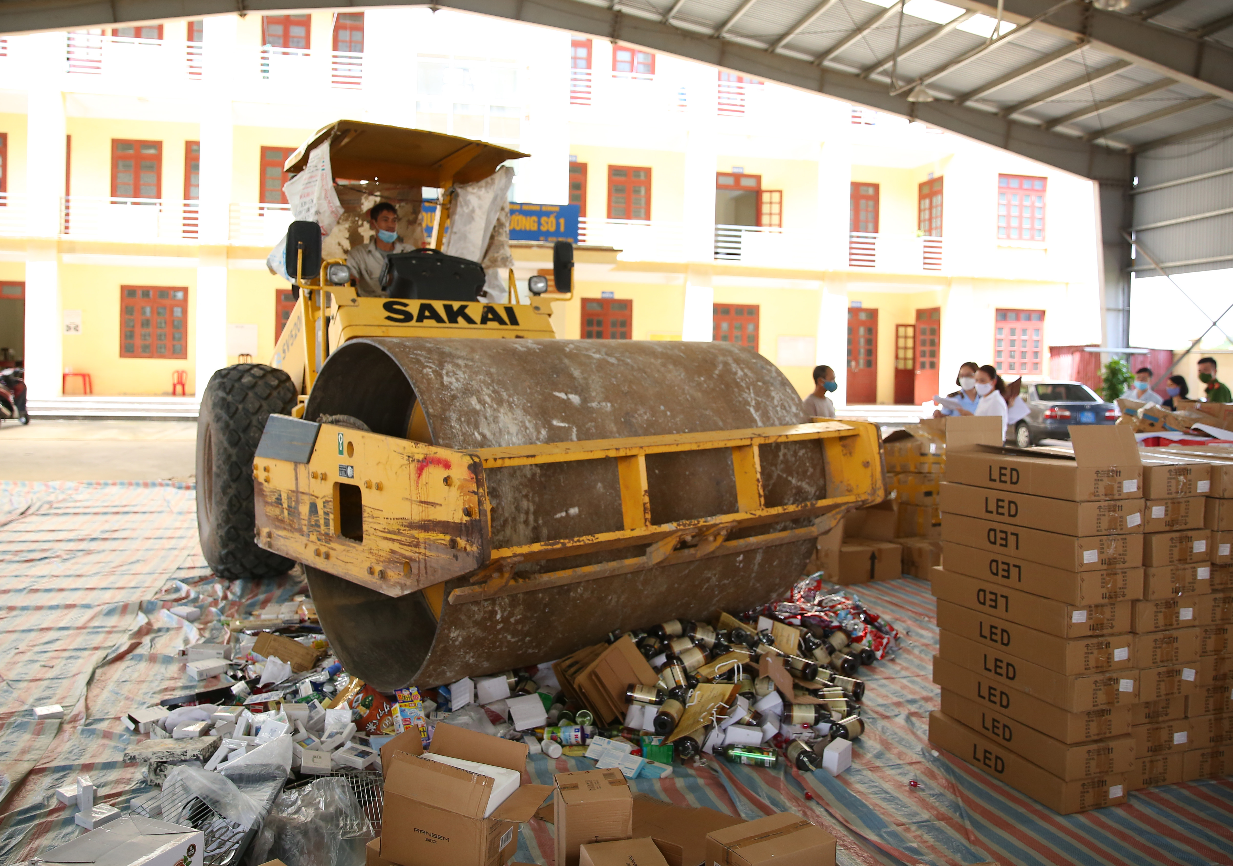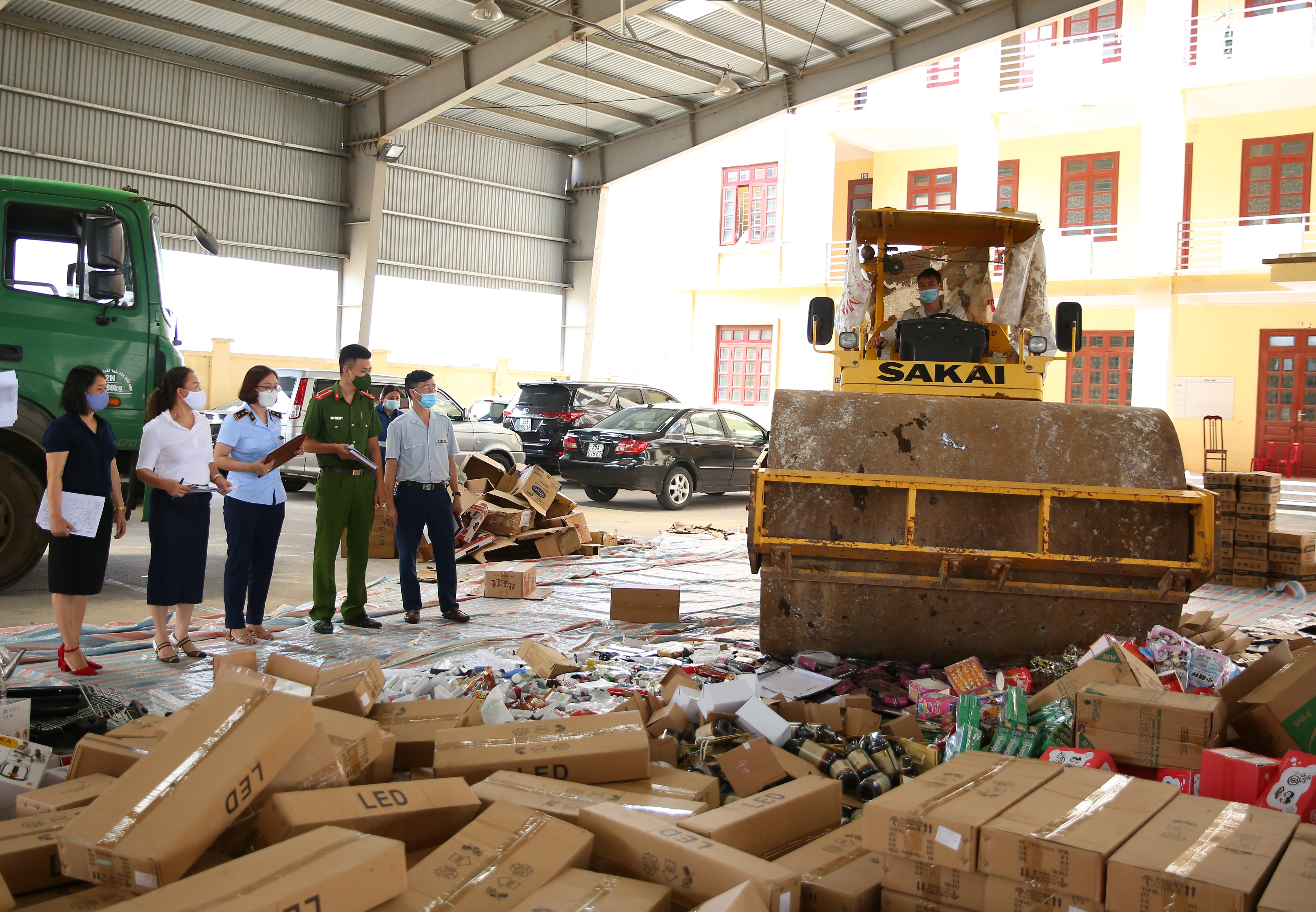 Theo quy định của pháp luật, Cục Quản lý thị trường tỉnh Ninh Bình đã chủ trì tiêu hủy tất cả hàng hóa tang vật vi phạm hành chính dưới sự giám sát của các lực lượng chức năng: Sở Tài chính, Sở Khoa học, Sở Y tế, Phòng cảnh sát môi trường – công an tỉnh. Toàn bộ số sản phẩm vi phạm đã được tiêu hủy đúng hình thức, quy trình, quy định, bảo đảm vệ sinh môi trường, an toàn và đảm bảo sản phẩm sau khi tiêu hủy không còn giá trị sử dụng. Hàng hóa được nghiền nát bằng xe lu tại sân của Cục Quản lý thị trường tỉnh Ninh Bình, sau đó được thu gom và xử lý tại Nhà máy xử lý chất thải rắn thành phố Tam Điệp. Trong quá trình tiêu hủy hàng hóa, Cục QLTT tỉnh Ninh Bình đảm bảo thực hiện đầy đủ các biện pháp 5K của Bộ Y tế trong công tác phòng, chống dịch covid-19.