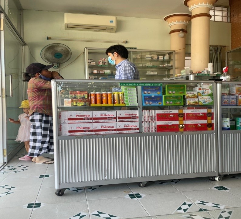 Tại thời điểm kiểm tra, nhà thuốc đang tư vấn thuốc cho khách hàng.