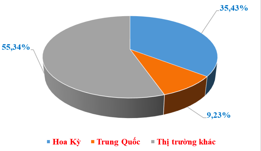 Tuy nhiên, diễn biến ở 2 thị trường này đối nghịch. Trong khi kim ngạch xuất khẩu sang Trung Quốc tăng khá thì thị trường lớn nhất là Hoa Kỳ lại giảm mạnh.