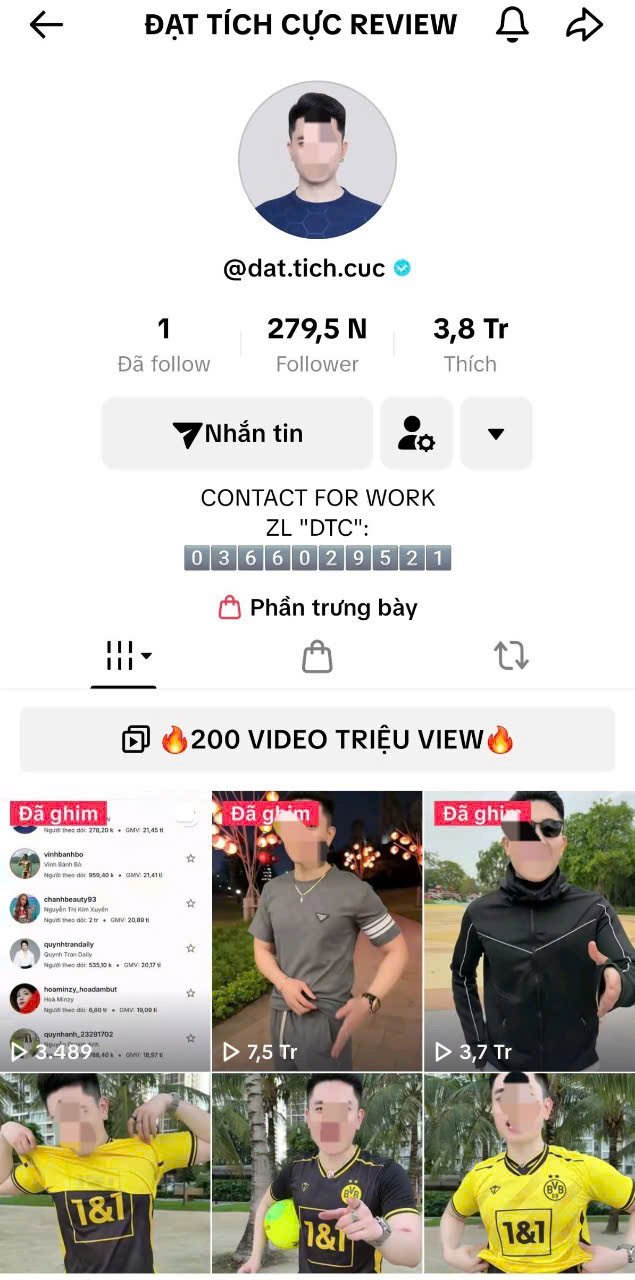 Tài khoản TikTok "Đạt tích cực review" với hơn 279.000 luượt theo dõi và hơn 3,8 triệu lượt thích.