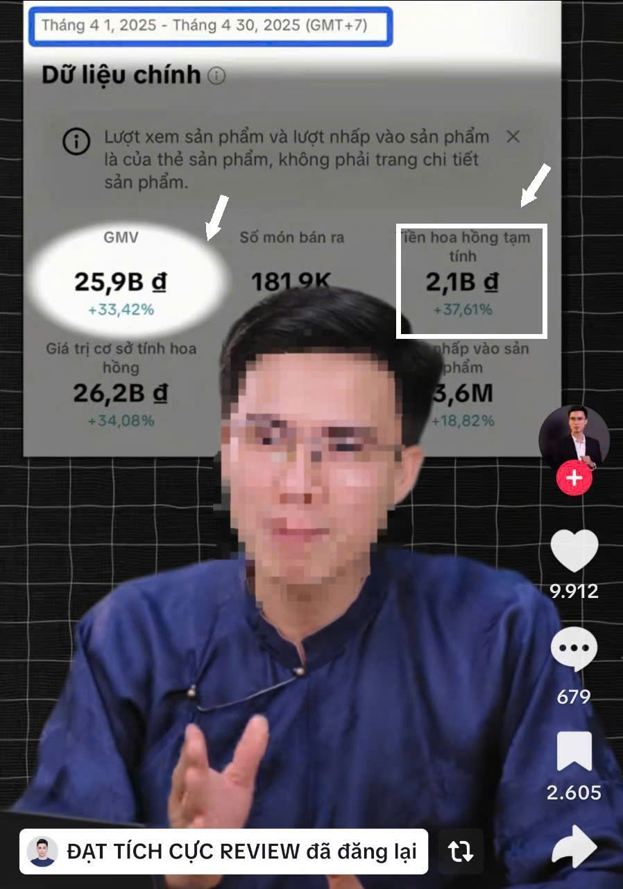 Dẫu biết, dù bản thân TikToker cho rằng chỉ “làm affiliate”, nhưng theo thông tin đăng tải của một số hot TikToker chuyên “khám kênh ”, có những thời điểm tài khoản “Đạt tích cực review” từng đạt doanh thu lên tới 25 tỷ đồng.