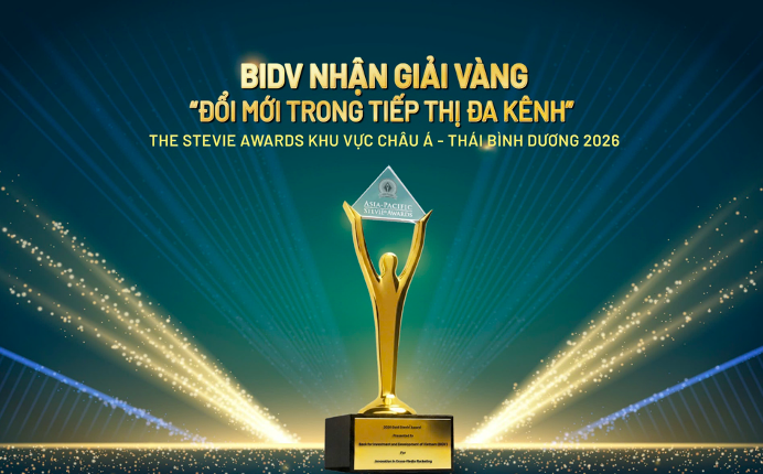 Ngày 17/4, tại Macau, BIDV lần đầu tiên tham dự và đã được xướng tên Giải Vàng tại lễ trao giải The Stevie Awards khu vực Châu Á - Thái Bình Dương với hoạt động truyền thông kiến thức tài chính cho giới trẻ