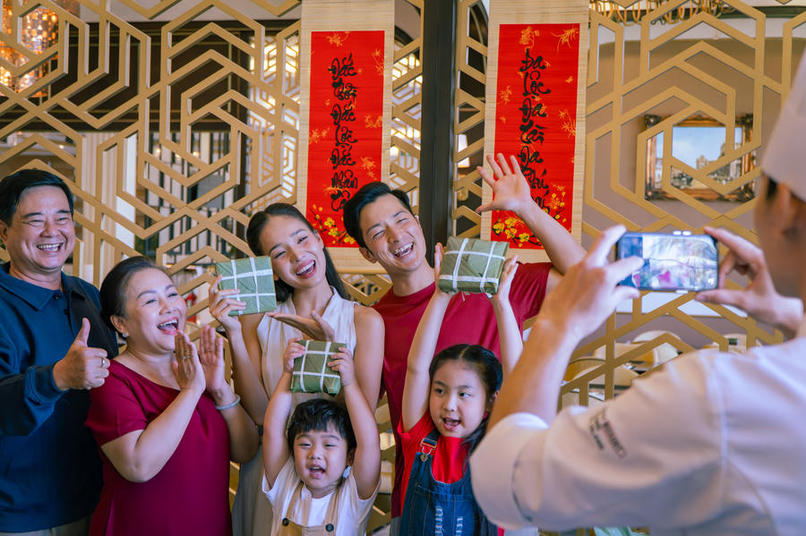 Ẩm thực mùa Tết tại đây là sự giao thoa tinh tế giữa phong vị quê nhà và tinh hoa quốc tế. Các bữa tiệc buffet mỗi ngày luôn ngập tràn món ngon truyền thống, nơi ngài Thần Tài vui tính sẽ ghé thăm và trao tặng những bao lì xì may mắn.
