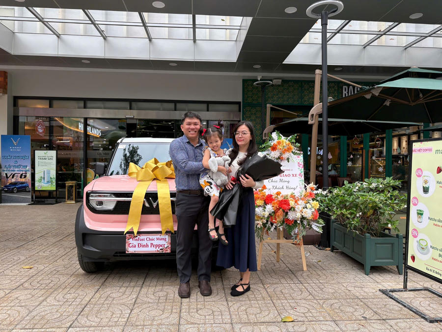 “Thiết kế xe nhỏ nhắn, dễ thương, đi phố nhẹ nhàng rất phù hợp”, anh Sang chia sẻ. Anh nhận chiếc VF 3 màu hồng (Rose Pink) vào cuối năm 2024. Ban đầu, anh Sang mua VF 3 để vợ sử dụng là chủ yếu. Tuy nhiên, cuối cùng chính anh lại là người thường xuyên sử dụng chiếc xe này cho công việc hàng ngày, thậm chí là những chuyến đi xa cùng gia đình.