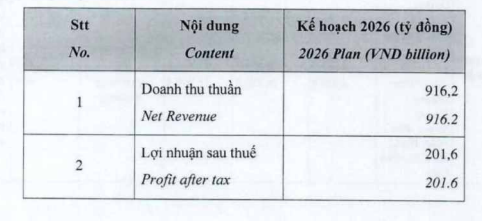 Đặt mục tiêu lãi sau thuế năm 2026 hơn 201 tỷ đồng
