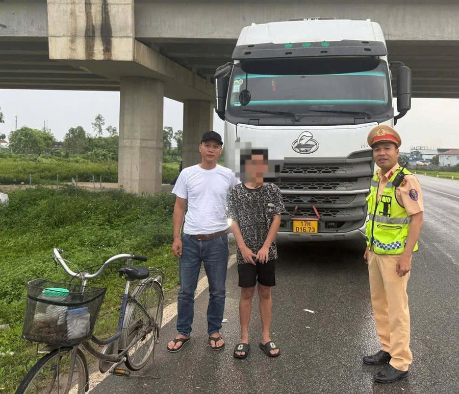 Tin90p.com - Đạp xe nhầm vào cao tốc, thiếu niên được CSGT hỗ trợ kịp thời