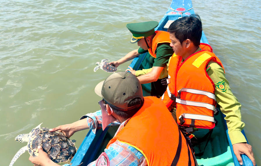 Chiều 20/4, Đồn Biên phòng Tam Giang Tây (BĐBP Cà Mau) cho biết, đơn vị vừa tiếp tục phối hợp với Hạt Kiểm lâm Ngọc Hiển và ngư dân địa phương tiến hành thả một cá thể vích nặng hơn 60 kg trở lại môi trường tự nhiên, sau khi được người dân phát hiện và cứu hộ an toàn. Đây là hoạt động ý nghĩa, góp phần bảo vệ các loài rùa biển quý hiếm đang có nguy cơ tuyệt chủng.