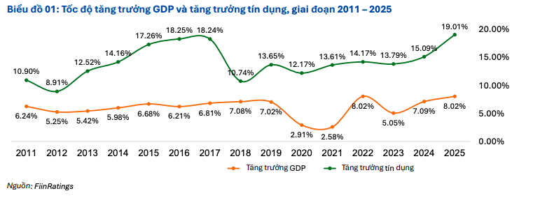 Năm 2025 ghi nhận mức tăng trưởng tín dụng ấn tượng, lên tới khoảng 19% - vượt ngưỡng mục tiêu thông thường là 15%. Động lực đến từ đầu tư hạ tầng, dòng vốn FDI, sự phục hồi của bất động sản và tiêu dùng cá nhân. Tuy nhiên, đà tăng này được dự báo khó duy trì khi bước sang năm 2026.