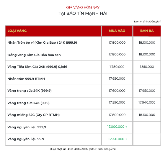 Cụ thể, giá vàng miếng SJC tại Công ty Vàng bạc Đá quý Sài Gòn (SJC), Tập đoàn Doji, Phú Quý và hệ thống PNJ đồng loạt điều chỉnh tăng 2 triệu đồng mỗi lượng ở cả hai chiều mua - bán, đưa giá giao dịch lên vùng 178 - 181 triệu đồng/lượng.