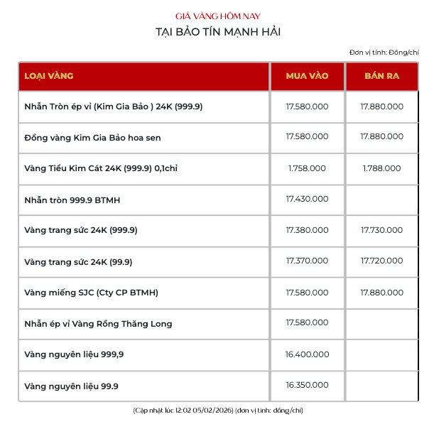 Cùng lúc đó, giá vàng miếng SJC tại Bảo tín Mạnh Hải niêm yết giao dịch tại 175,8 - 178,8 triệu đồng/lượng.