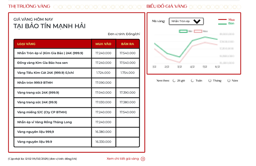 Tin90p.com - Giá vàng ngày 6/2: Vàng thế giới đi xuống, vàng miếng SJC và vàng nhẫn tiếp đà giảm, lùi về ngưỡng 172 triệu đồng/lượng