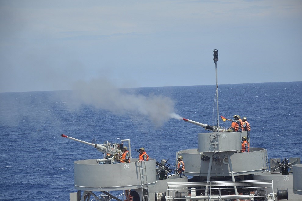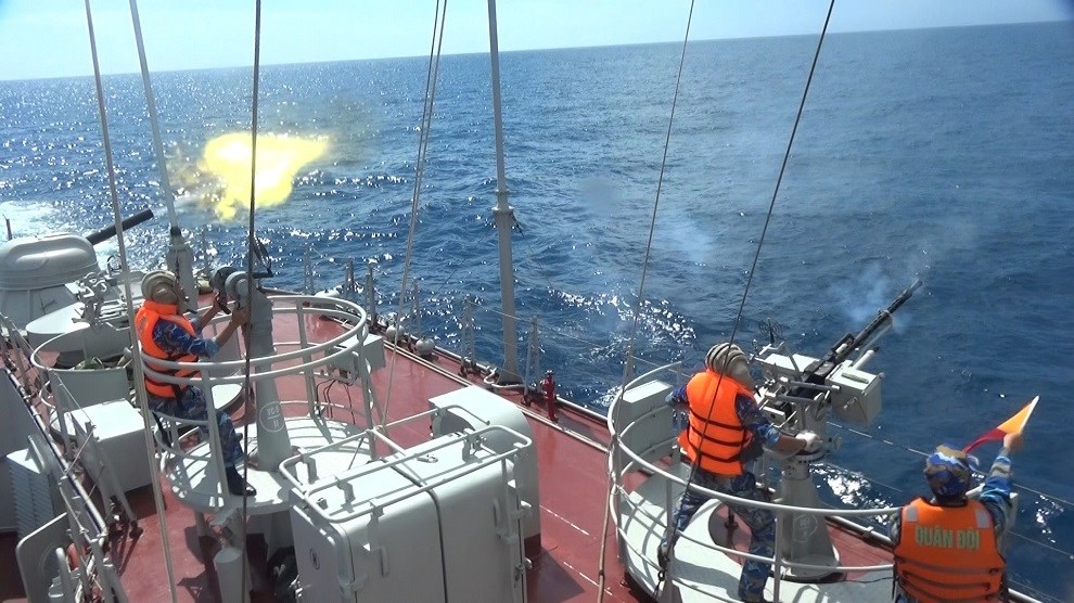 | Lữ đoàn 167 bắn đạn thật trên biển. |