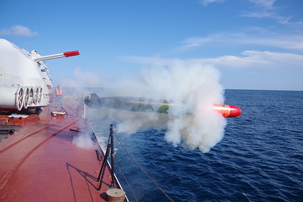 | Huấn luyện bắn ngư lôi trên biển. |