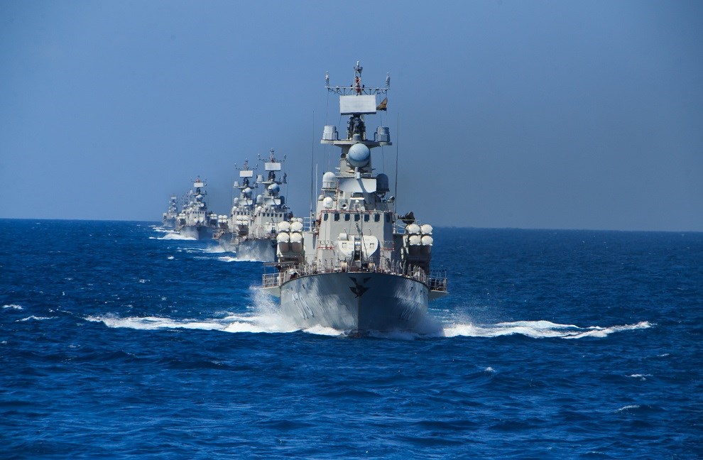 | Lữ đoàn tàu tên lửa 167 huấn luyện đội hình trên biển. |