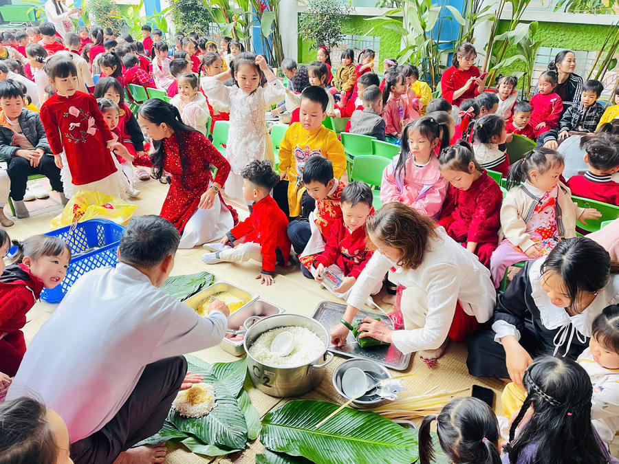 Tin90p.com - Không gian nghệ thuật, trải nghiệm Tết cổ truyền tại Trường Mầm non Minh Khai