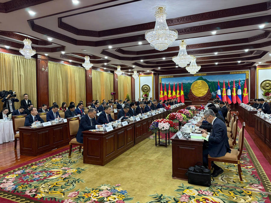 Tại Hội đàm giữa hai đồng chí Tổng Bí thư được tổ chức ngay sau Lễ đón chính thức trọng thể tại Trụ sở Trung ương Đảng, Tổng Bí thư Ban Chấp hành Trung ương Đảng Nhân dân Cách mạng Lào, Chủ tịch nước Cộng hòa Dân chủ Nhân dân Lào Thongloun Sisoulith và Tổng Bí thư Ban Chấp hành Trung ương Đảng Cộng sản Việt Nam Tô Lâm đã trao đổi sâu rộng về chủ trương, chính sách lớn trong Nghị quyết Đại hội mỗi Đảng, tình hình mỗi nước, tình hình thế giới và khu vực; và phương hướng thúc đẩy hơn nữa mối quan hệ hữu nghị vĩ đại, đoàn kết đặc biệt, hợp tác toàn diện, gắn kết chiến lược Việt Nam-Lào trong giai đoạn mới.