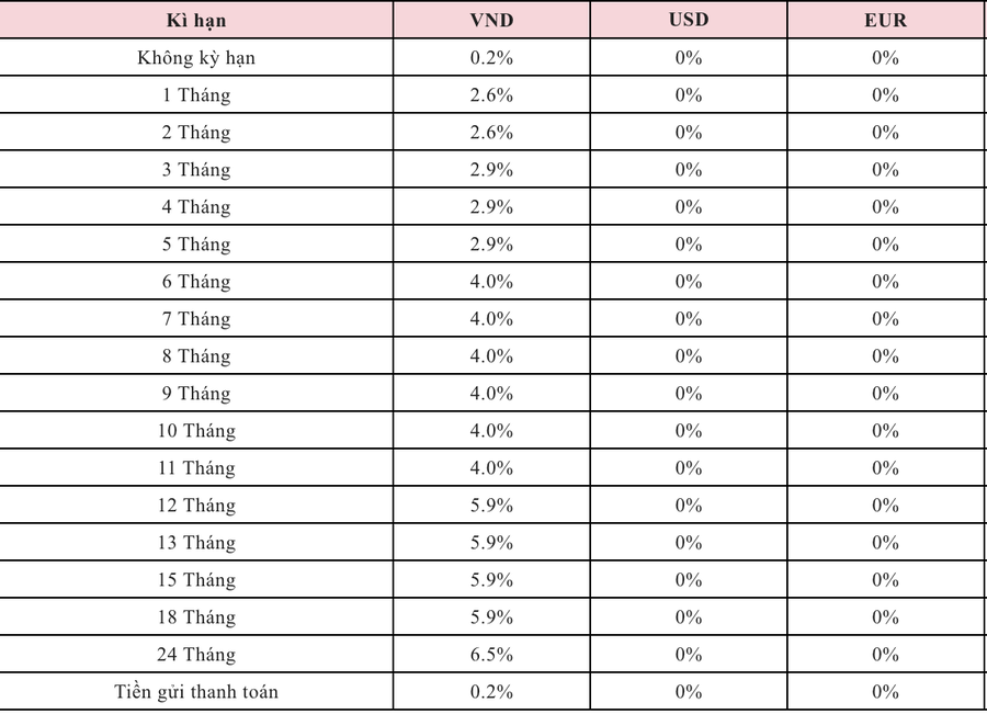 Trong khi đó, Ngân hàng VIB ưu đãi lãi suất tiết kiệm 7,9%/năm, kỳ hạn 6-11 tháng, cho khách hàng mở tiết kiệm mới từ 2 triệu đồng thông qua ứng dụng ngân hàng trong tháng 3/2026. Ngân hàng SeABank thậm chí còn trả cho người gửi tiền lãi suất lên đến 8,8%/năm với các khoản tiền gửi từ 50 triệu đồng trước ngày 8/4/2026. Trong khi đó lãi suất tiết kiệm cao nhất theo niêm yết của ngân hàng là 6,25%/năm. Ngoài ưu đãi kể trên, SeABank tiếp tục duy trì chính sách lãi suất cộng thêm 0,2%/năm dành cho khách hàng gửi tiết kiệm 6, 12, 13 tháng với số tiền từ 100 triệu đồng. Với GPBank và Ngân hàng số Cake by VPBank dẫn đầu về lãi suất huy động cao nhất, lên đến 9%/năm các kỳ hạn 6-12 tháng. Trong đó, Cake cộng thêm lãi suất 1,1%/năm, còn GPBank cộng thêm từ 2,55%/năm đến 3,15%/năm. Ngân hàng số Vikki Bank, một ngân hàng thuộc hệ sinh thái HDBank, đang trả lãi suất ngân hàng trong tháng 3/2026 từ 9%/năm với các khoản tiền gửi từ 500 triệu đồng. Trong đó, lãi suất ngân hàng cao nhất lên đến 9,2%/năm với kỳ hạn 12-13 tháng |
