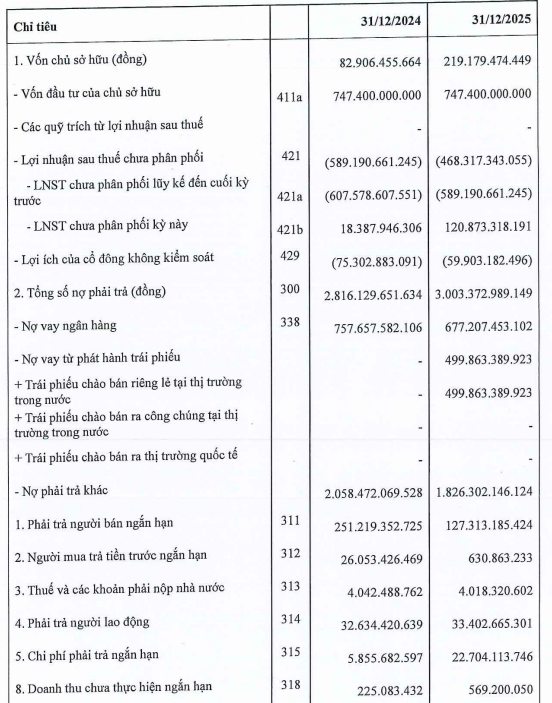 Nhờ kết quả kinh doanh tích cực, lỗ lũy kế đã giảm 21%, từ hơn 589 tỷ đồng cuối năm 2024 xuống còn khoảng 468 tỷ đồng vào cuối năm 2025.