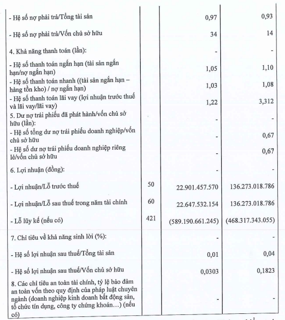 Cũng nhờ sự cải thiện vốn chủ sở hữu từ gần 83 tỷ đồng (năm 2024) lên 219 tỷ đồng (năm 2025) đã giúp giảm đáng kể hệ số đòn bẩy. Hệ số nợ phải trả/vốn chủ sở hữu giảm mạnh từ 34 lần xuống còn 14 lần.