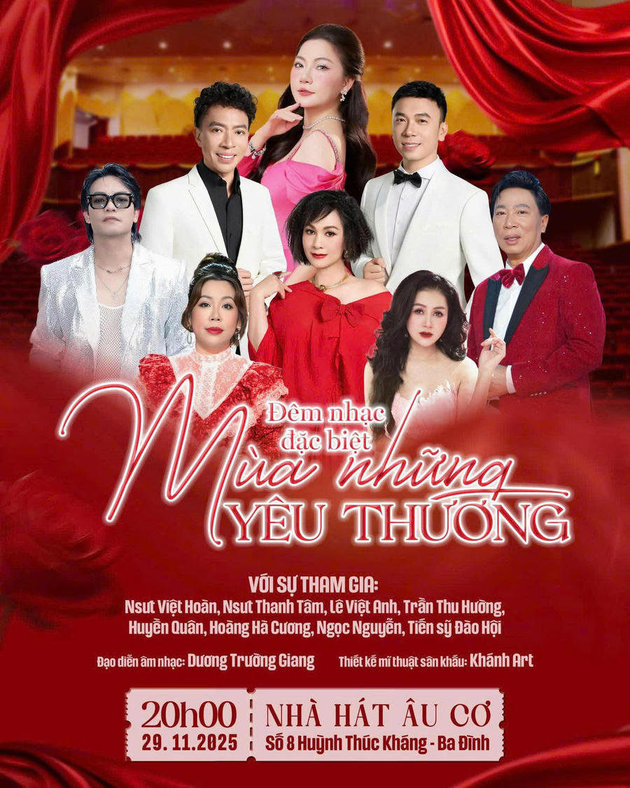 Khán giả yêu nhạc sẽ có cơ hội đắm mình trong không gian nghệ thuật đầy cảm xúc trong chương trình âm nhạc đặc biệt “Mùa những yêu thương” do NSƯT Việt Hoàn khởi xướng và dàn dựng diễn ra vào tối ngày 29/11/2025 tại Nhà hát Âu Cơ (Hà Nội).