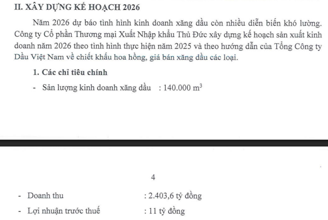 Trong năm 2026, Doanh nghiệp sẽ tập trung tăng sản lượng bán lẻ thông qua các cửa hàng xăng dầu hiện hữu và phát triển mới. Công ty hướng đến tỷ lệ 30% số cửa hàng phát triển mới là tự đầu tư trong năm 2026, nhằm đảm bảo hiệu quả kinh doanh.
