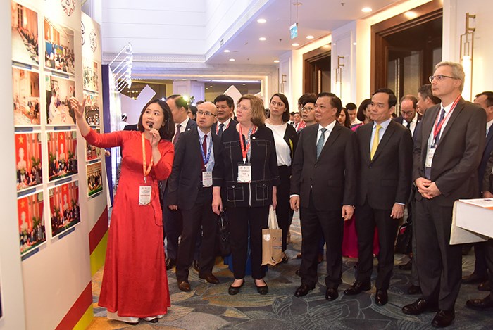 | Các đại biểu cấp cao Việt Nam - Pháp tham quan triển lãm. |